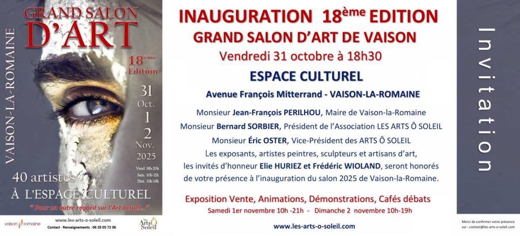 Retrouvez également mes peintures au Salon d'Art de VAISON-LA-ROMAINE, samedi 1er et dimanche 2 novembre.
